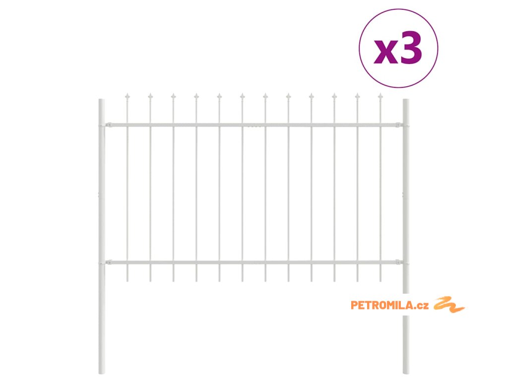 Zahradní plot 3 pcs Bílá 5,1 x 1,2 m Práškově lakovaná ocel