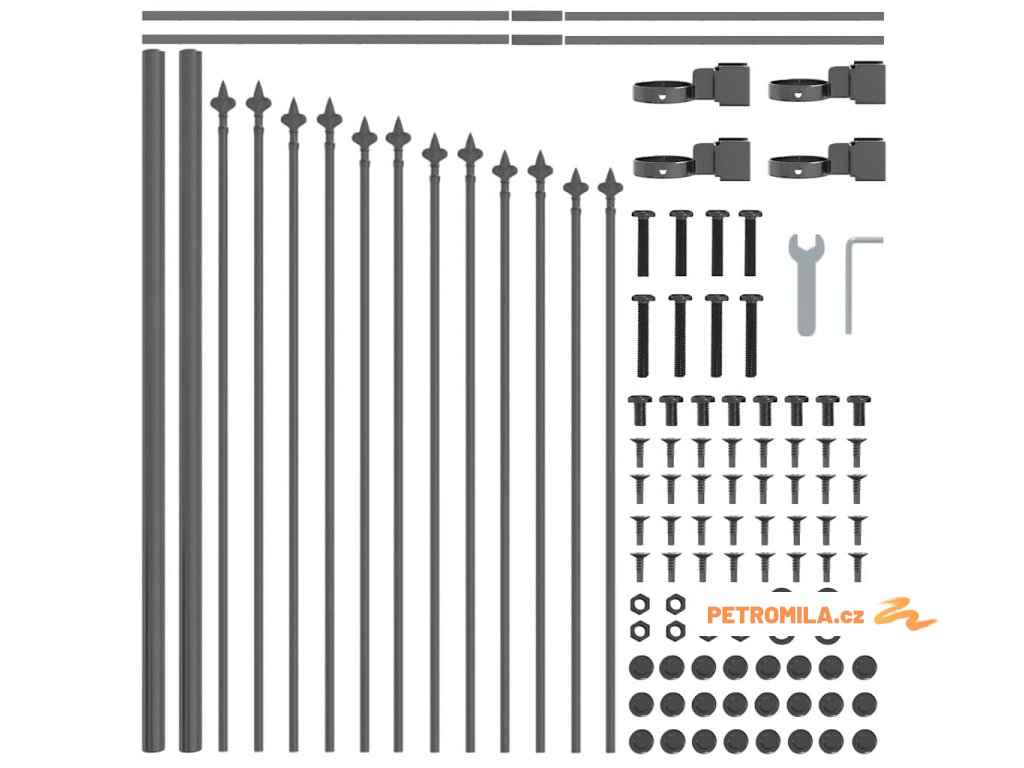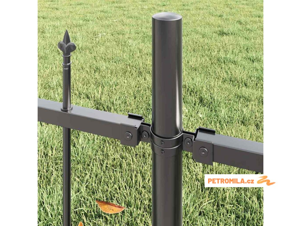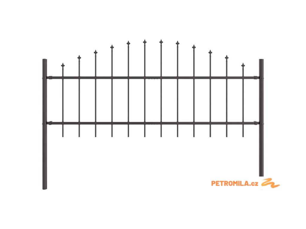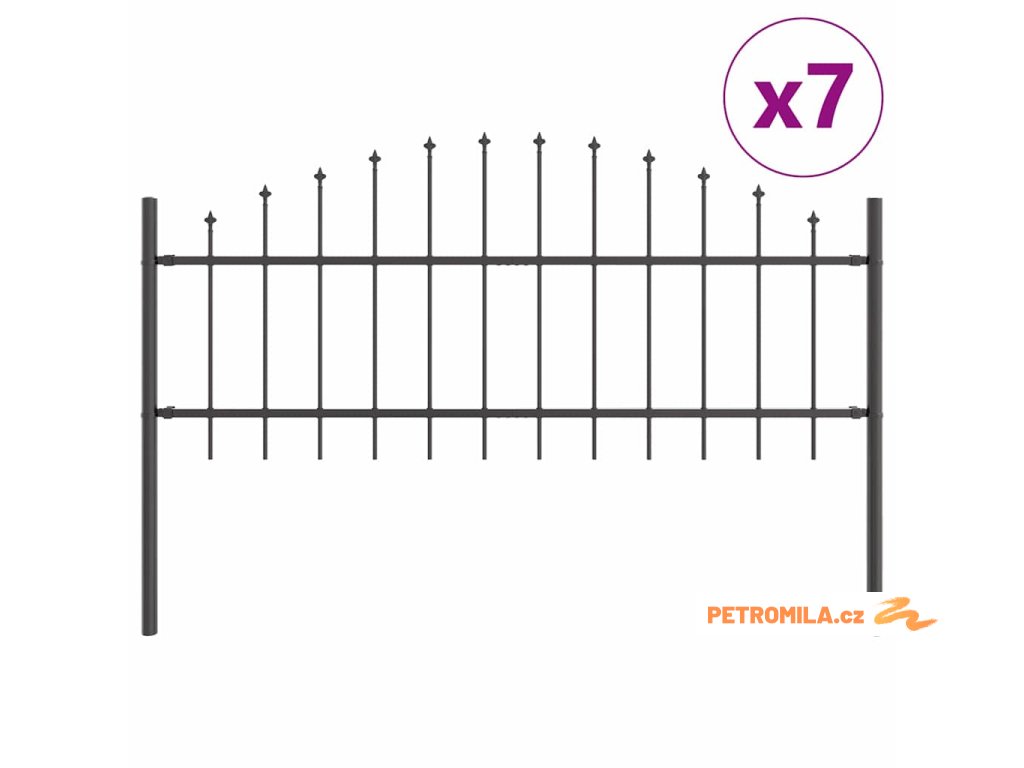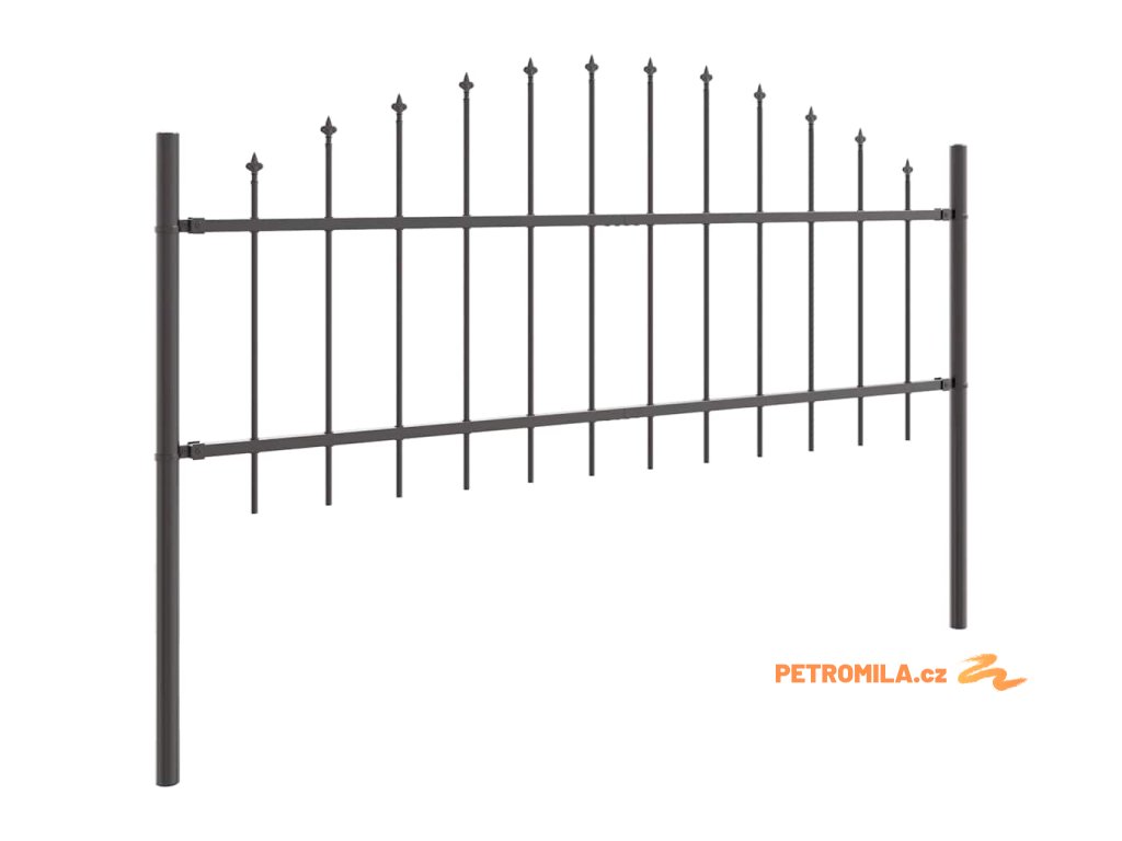 Zahradní plot s kopím nahoře černý 239 x 175 cm, práškově lakovaná ocel