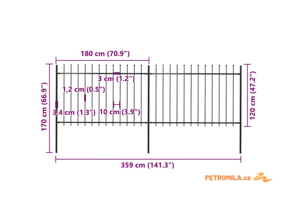 Zahradní plot s hroty ocelový 3,4 x 1,2 m černý