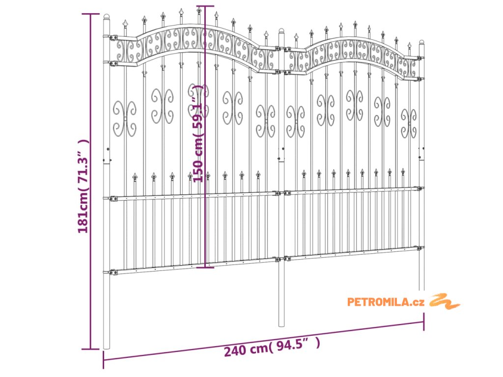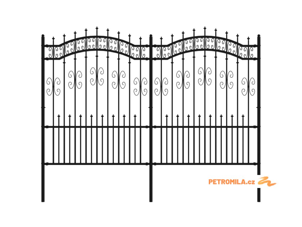 Zahradní plot s kopím nahoře černý 239 x 125 cm, práškově lakovaná ocel