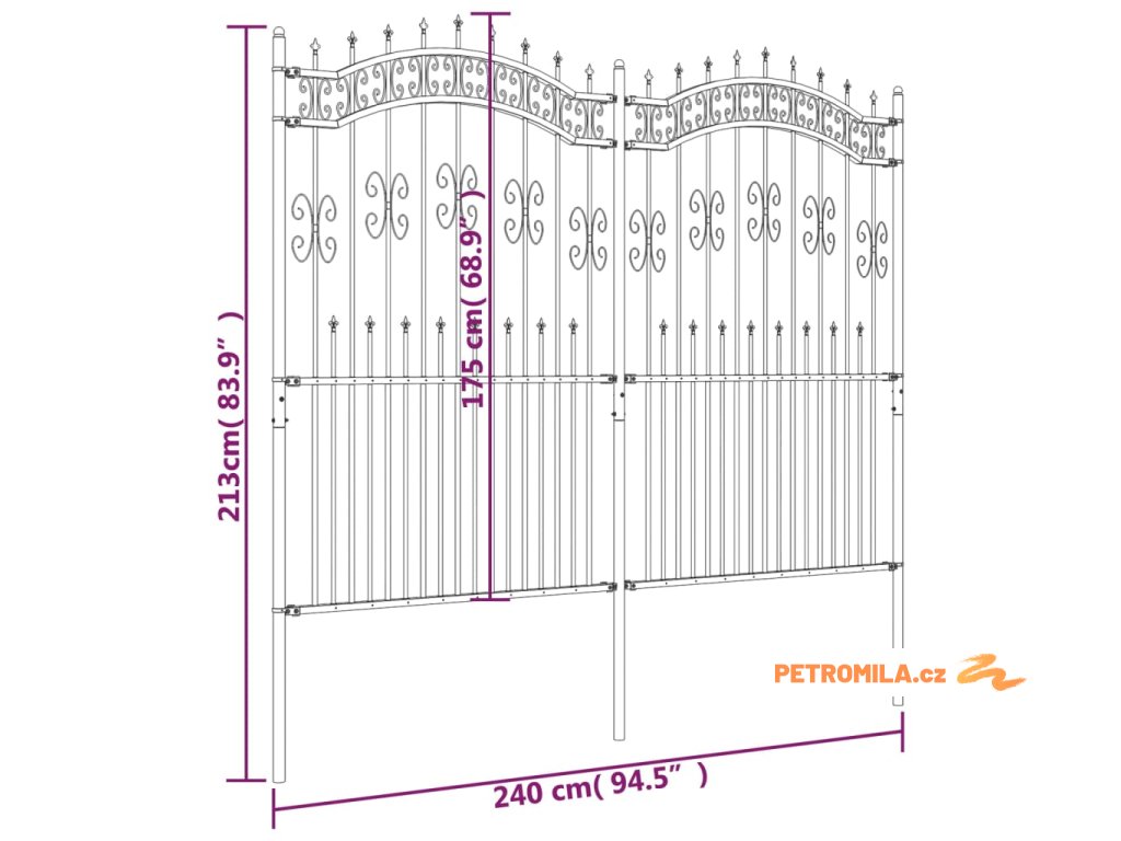 Zahradní plot s kopím nahoře černý 240 x 175 cm, práškově lakovaná ocel