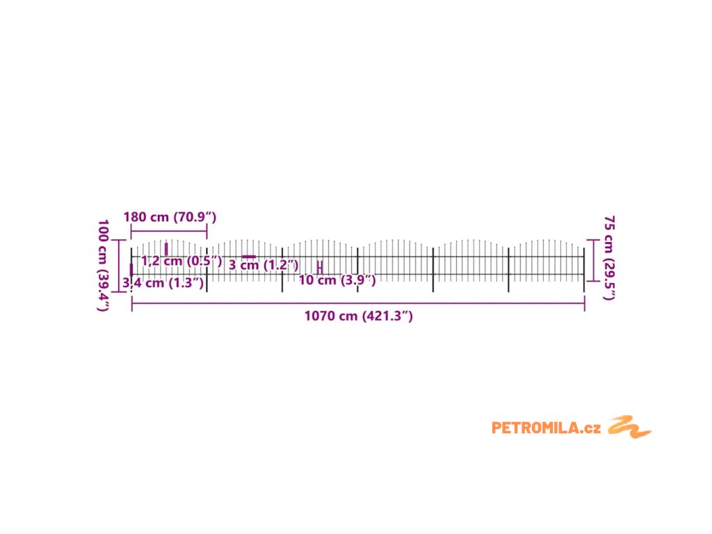 Zahradní plot s kopím nahoře ocelový 1070 x 100 cm černý