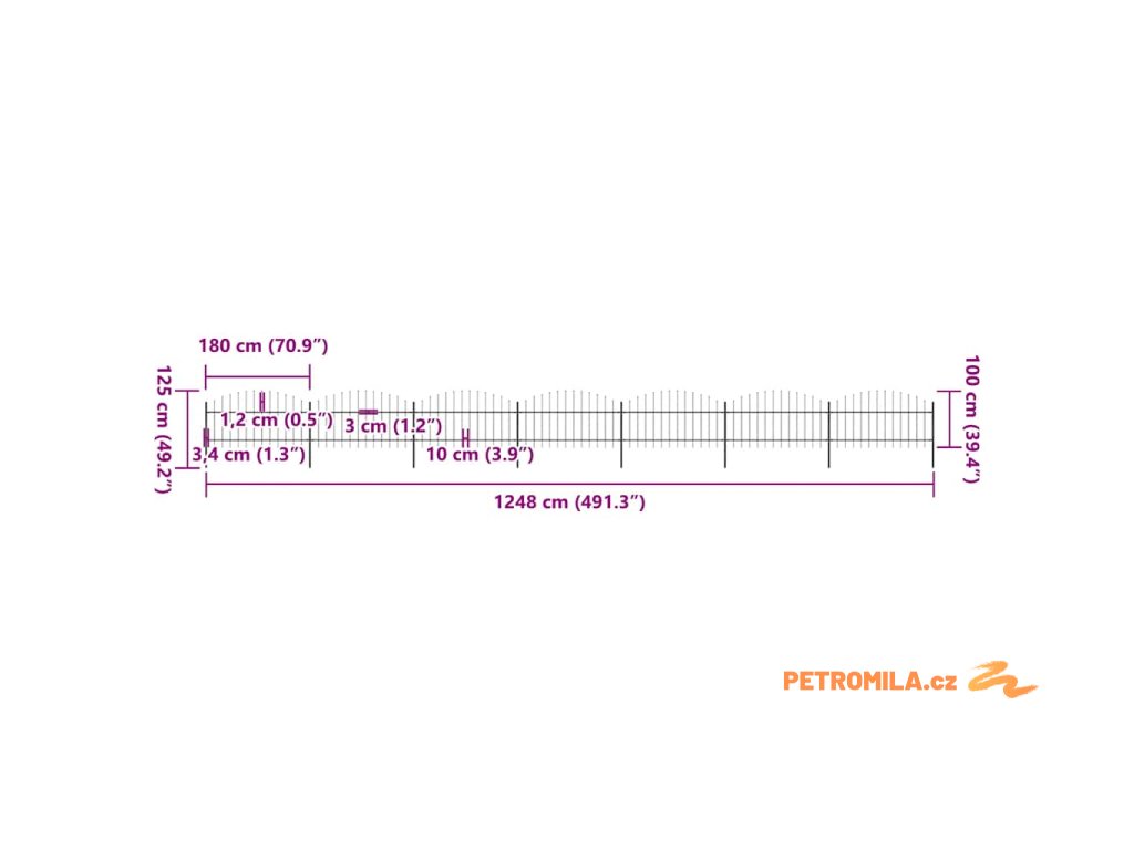 Zahradní plot s kopím nahoře ocelový 1248 x 125 cm černý
