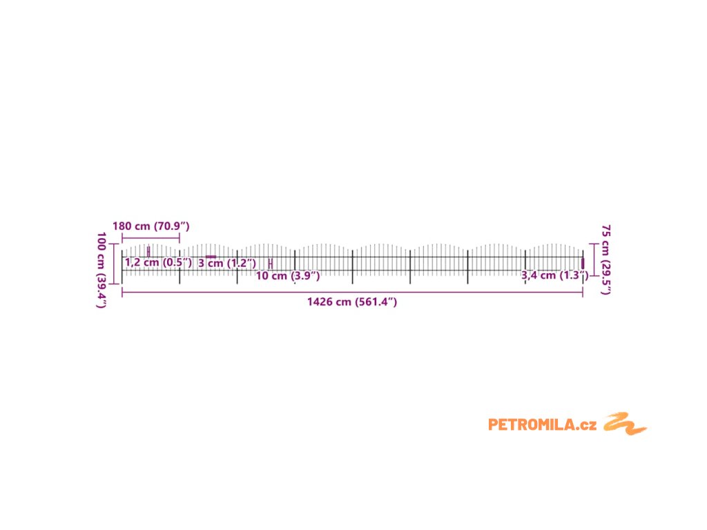 Zahradní plot s kopím nahoře ocelový 1426 x 100 cm černý