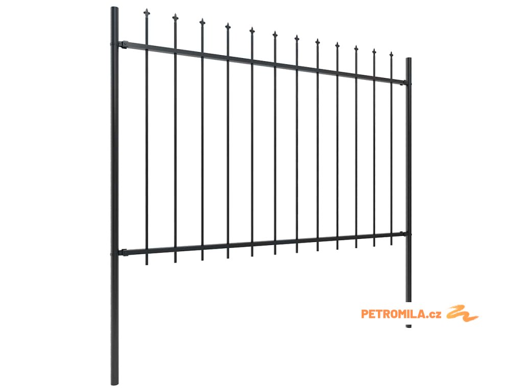 Zahradní plot s kopím nahoře ocelový 1426 x 120 cm černý