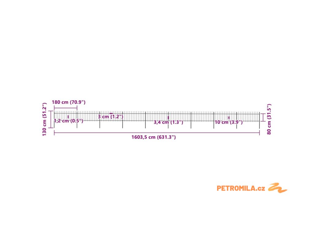 Zahradní plot s kopím nahoře ocelový 1603,5 x 80 cm černý