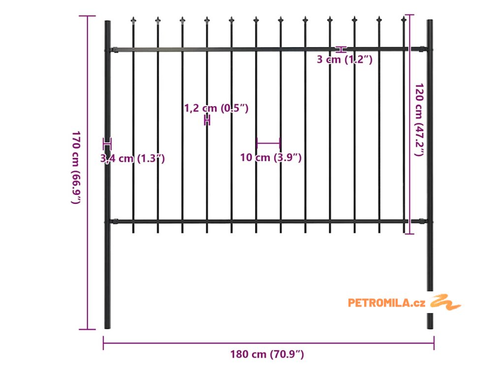 Náš zahradní plot tvoří svislé pruty nahoře zakončené hroty a pevné vodorovné výztuhy, které rám zpevňují. Poskytuje vysokou míru zabezpečení. Je zhotovený z vysoce odolné oceli ošetřené práškováním, a tudíž je výjimečně stabilní, pevný a dlouhodobě odolný. Sestavení zahradního plotu je snadné, veškerý montážní materiál je totiž součástí balení.