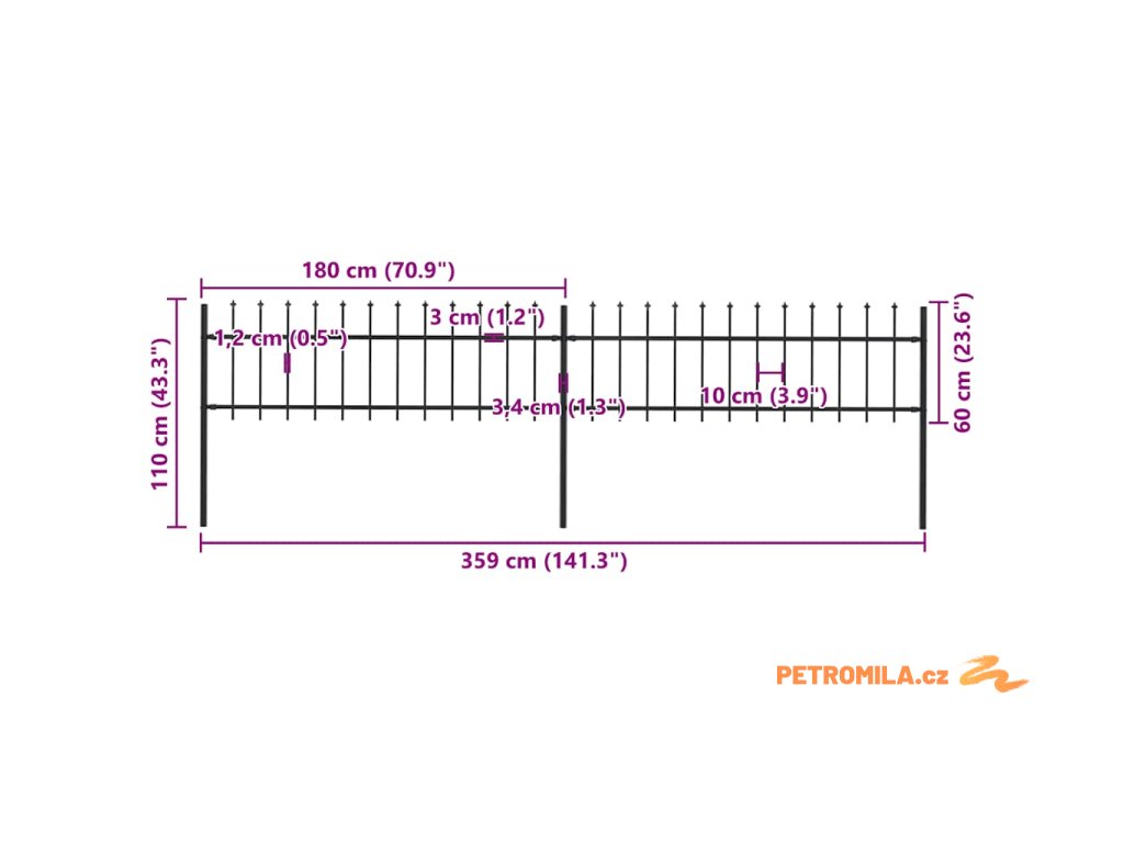 Zahradní plot s kopím nahoře ocelový 359 x 60 cm černý