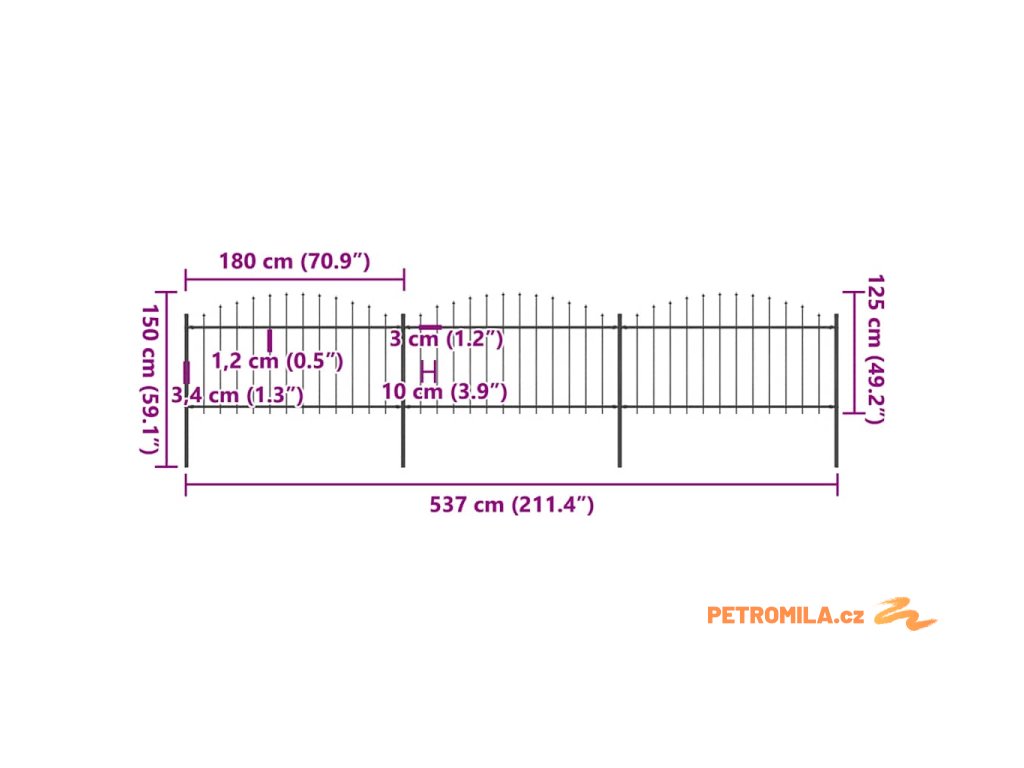Zahradní plot s kopím nahoře ocelový 537 x 150 cm černý