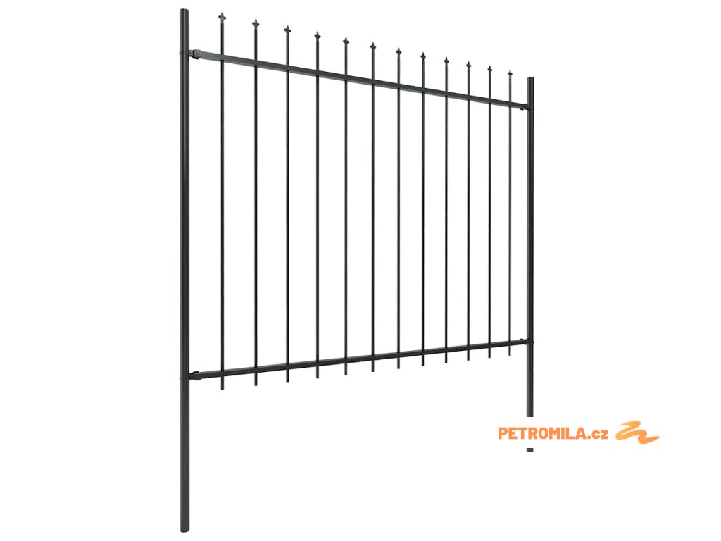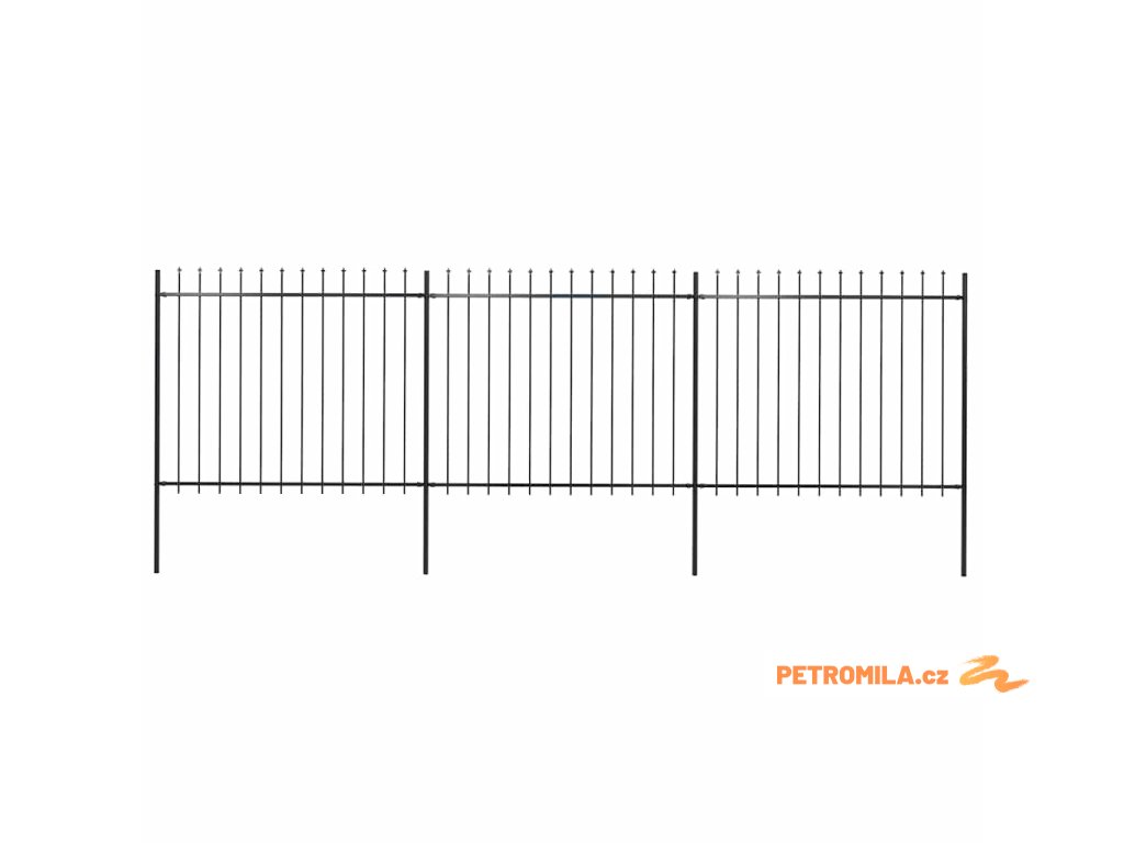 Zahradní plot s kopím nahoře ocelový 537 x 150 cm černý