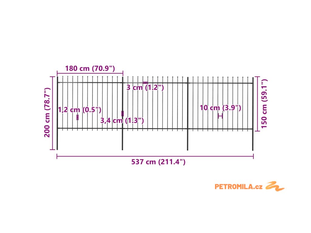 Náš zahradní plot tvoří svislé pruty nahoře zakončené hroty a pevné vodorovné výztuhy, které rám zpevňují. Poskytuje vysokou míru zabezpečení. Je zhotovený z vysoce odolné oceli ošetřené práškováním, a tudíž je výjimečně stabilní, pevný a dlouhodobě odolný. Sestavení zahradního plotu je snadné, veškerý montážní materiál je totiž součástí balení.