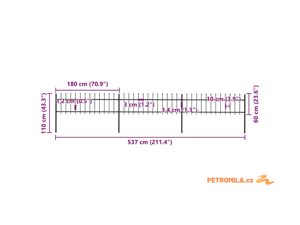 Zahradní plot s kopím nahoře ocelový 537 x 60 cm černý