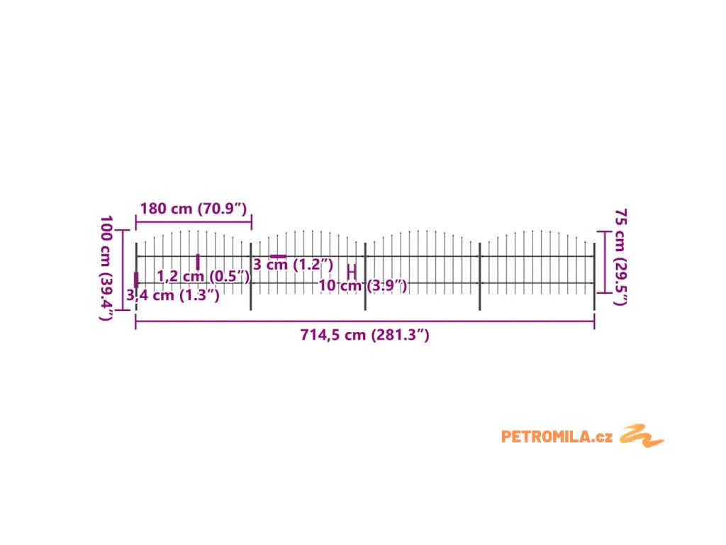 Zahradní plot s kopím nahoře ocelový 714,5 x 100 cm černý