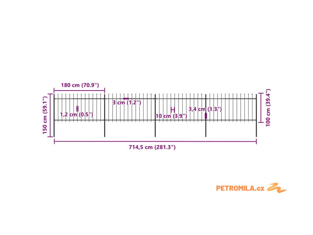 Zahradní plot s kopím nahoře ocelový 714,5 x 100 cm černý