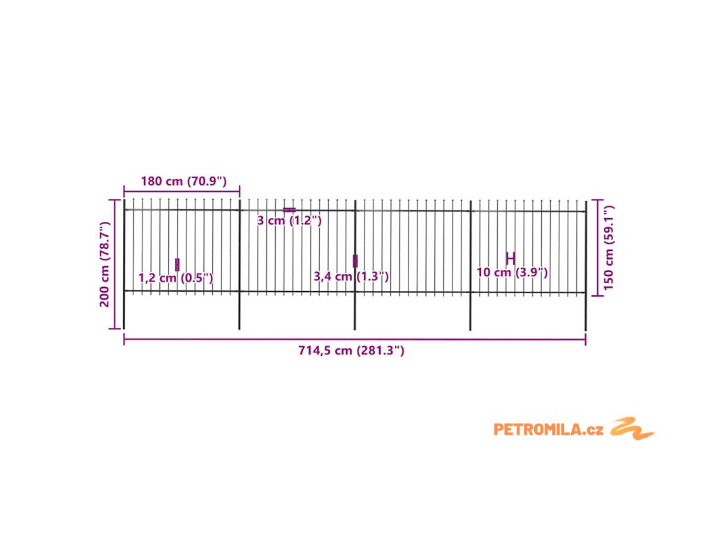 Zahradní plot s kopím nahoře ocelový 714,5 x 150 cm černý