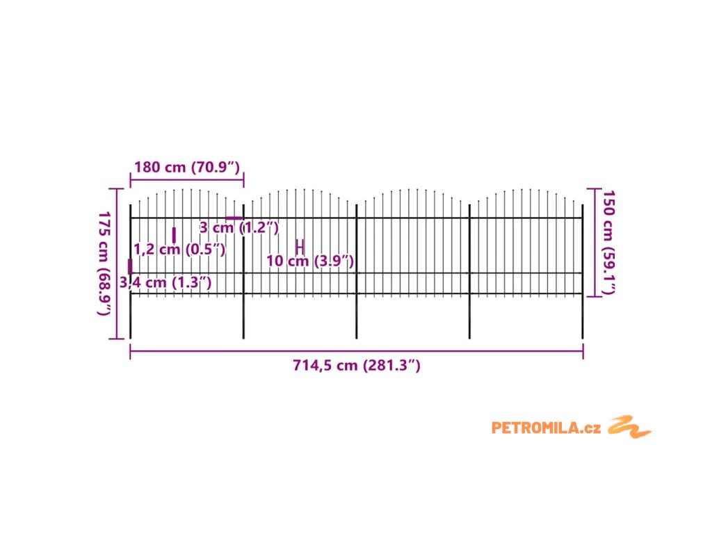 Zahradní plot s kopím nahoře ocelový 714,5 x 175 cm černý