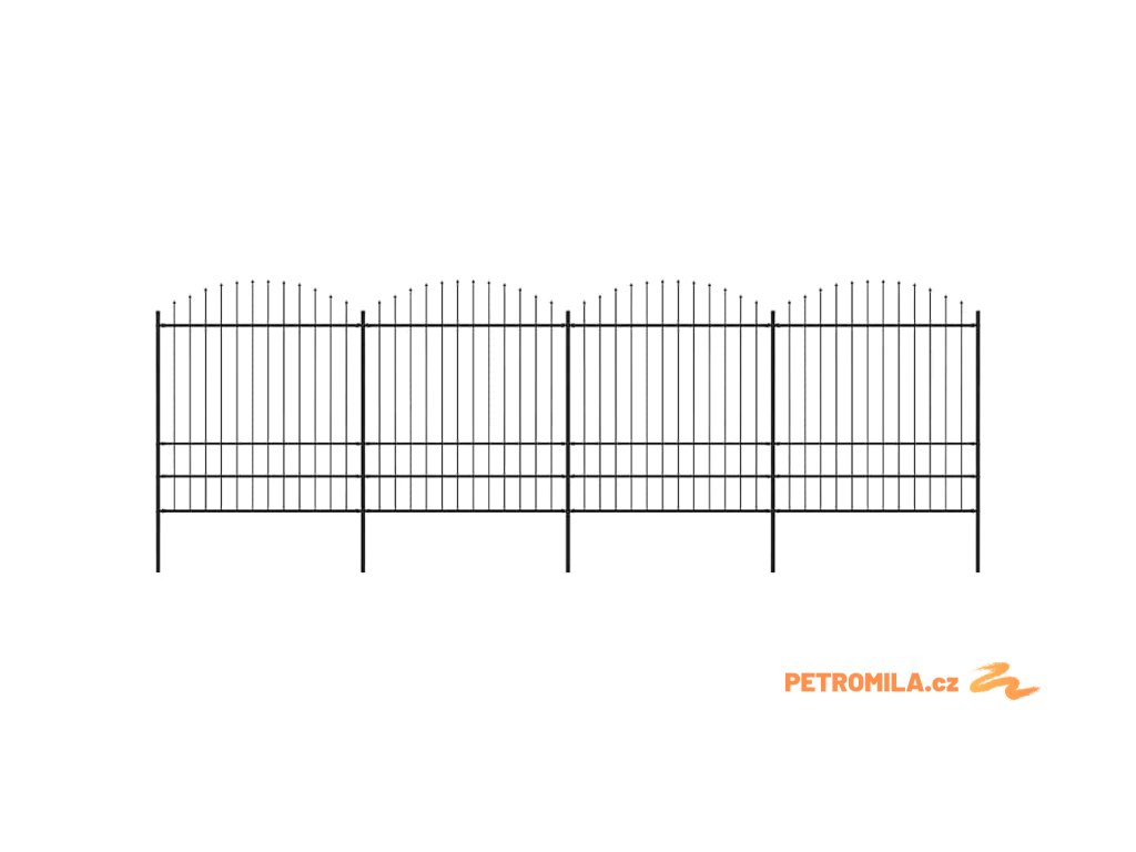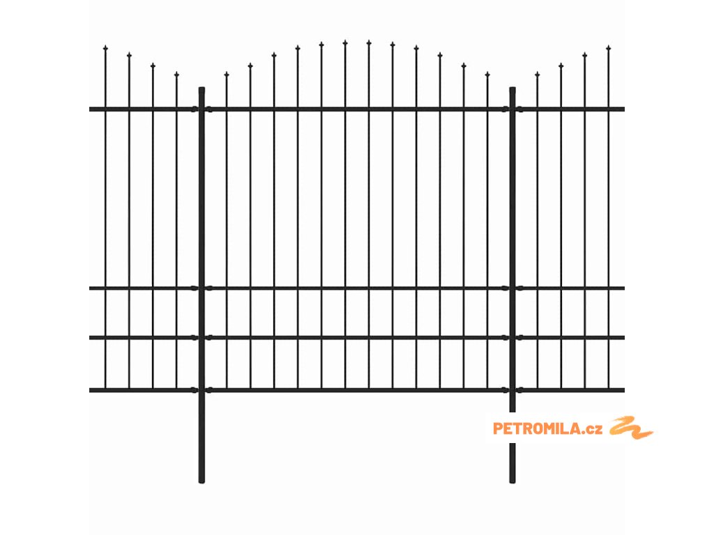 Zahradní plot s kopím nahoře černý 239 x 125 cm, práškově lakovaná ocel