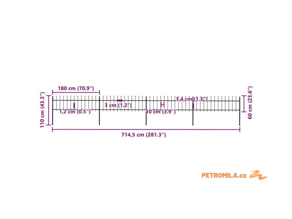 Zahradní plot s kopím nahoře ocelový 714,5 x 60 cm černý