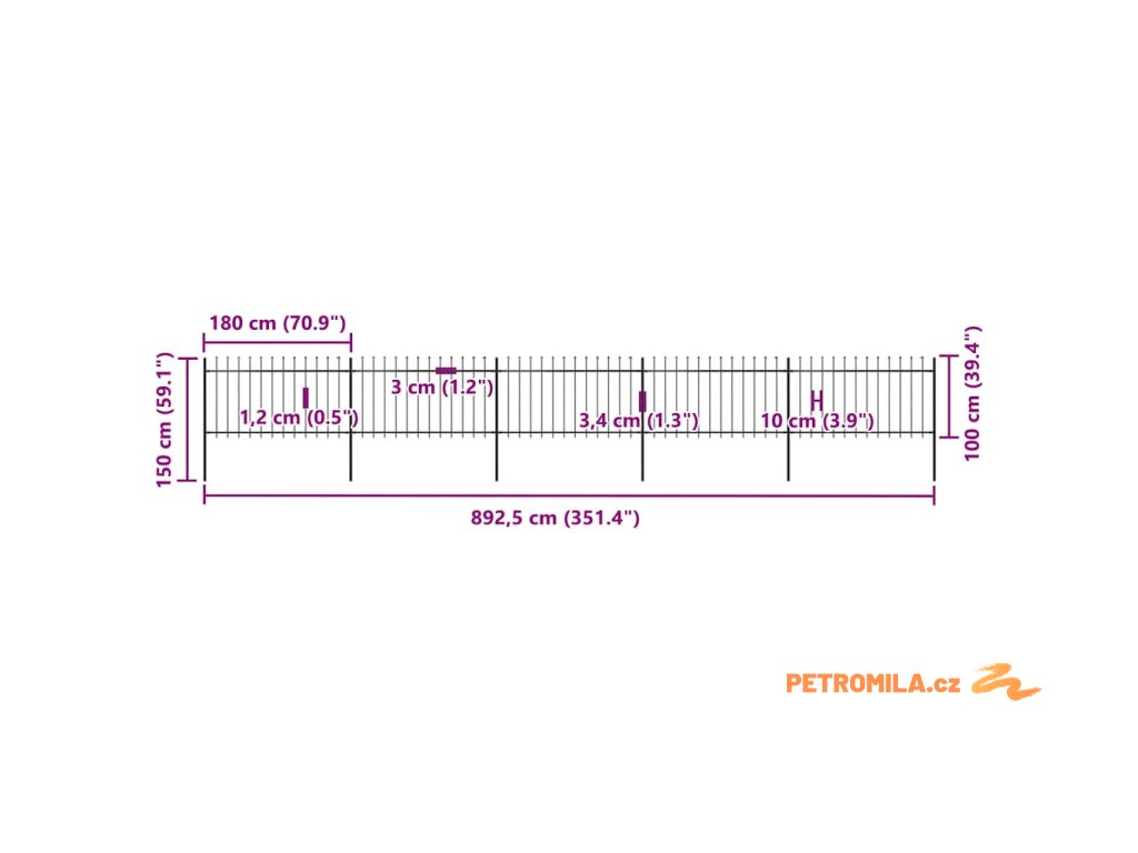 Zahradní plot s kopím nahoře ocelový 892,5 x 100 cm černý