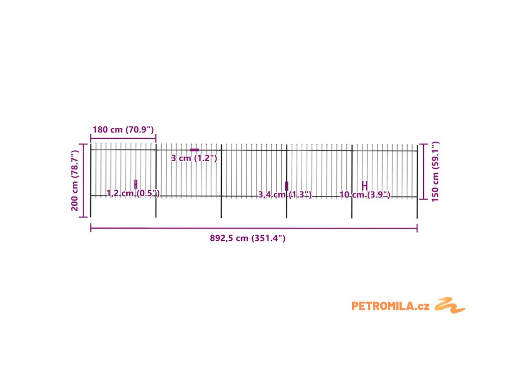 Zahradní plot s kopím nahoře ocelový 892,5 x 150 cm černý