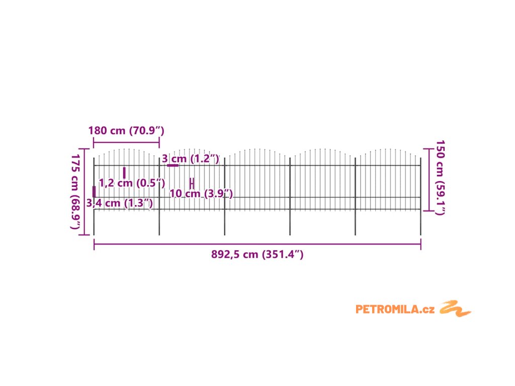 Zahradní plot s kopím nahoře ocelový 892,5 x 175 cm černý