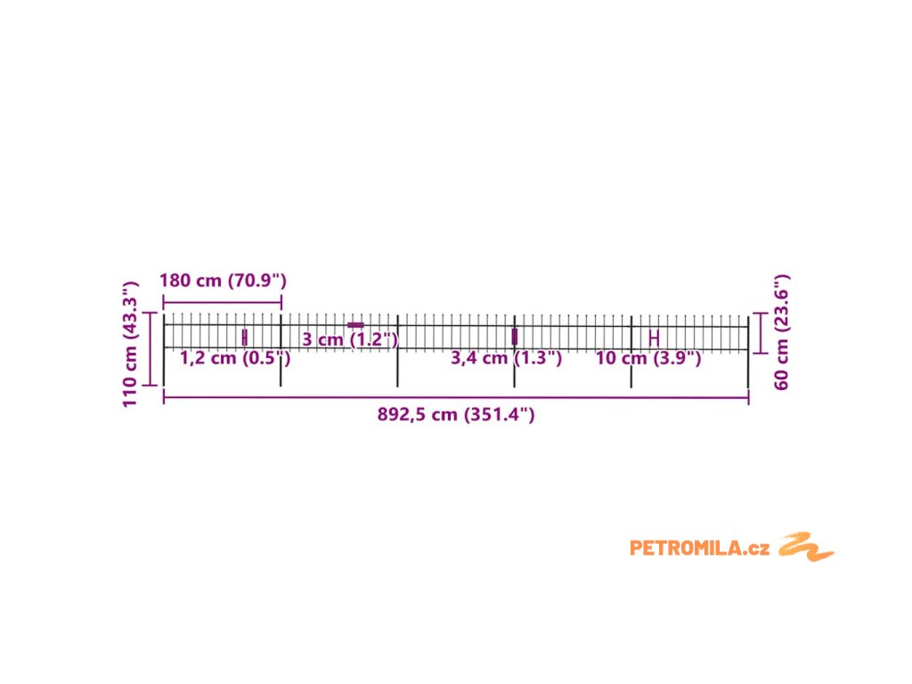 Zahradní plot s kopím nahoře ocelový 892,5 x 60 cm černý
