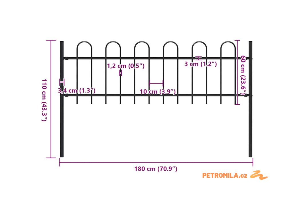 Zahradní plot s obloučky ocelový 1,8 m černý