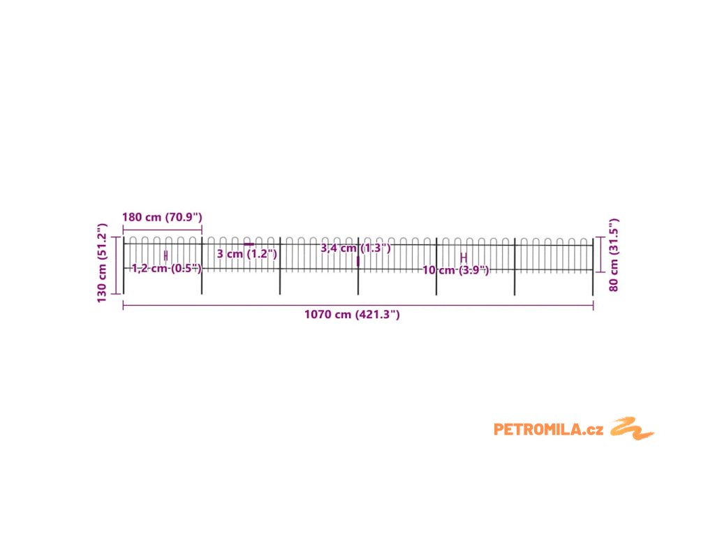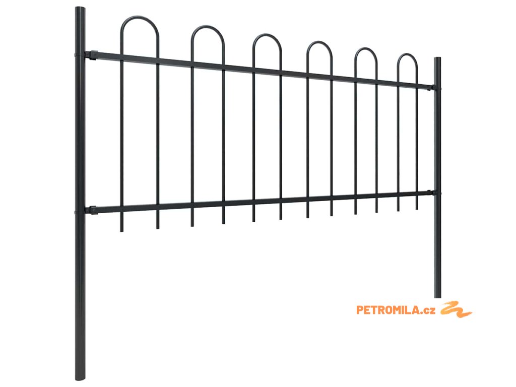 Zahradní plot s obloukem nahoře ocelový 1070 x 80 cm černý