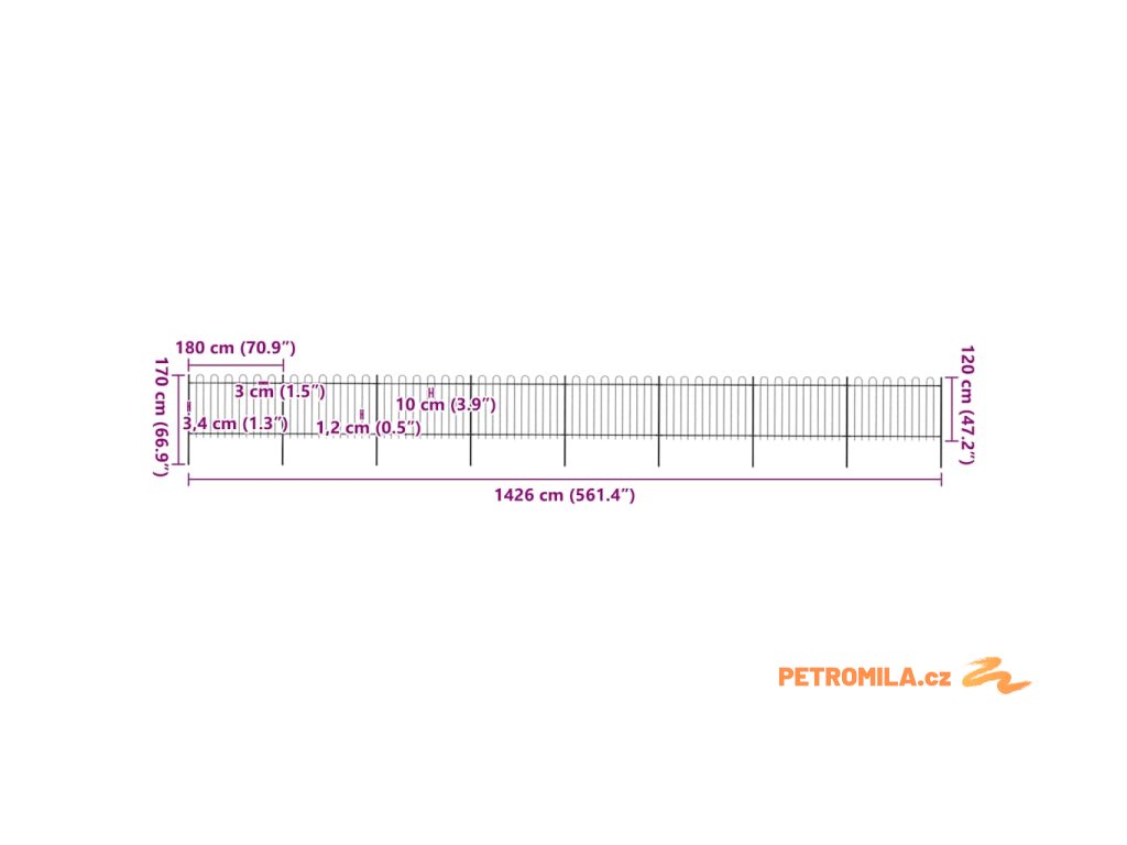 Náš zahradní plot tvoří svislé pruty nahoře zakončené obloučky a pevné vodorovné výztuhy, které rám zpevňují. Poskytuje vysokou míru zabezpečení. Plot, zhotovený z vysoce odolné oceli ošetřené práškováním, je výjimečně stabilní, pevný a dlouhodobě odolný. Jeho sestavení je snadné, veškerý montážní materiál je totiž součástí balení.