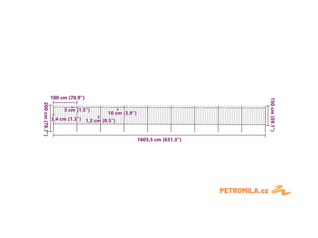 Zahradní plot s obloukem nahoře ocelový 1603,5 x 150 cm černý