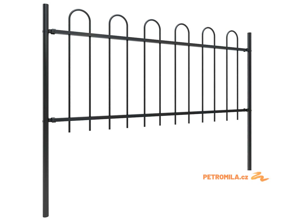 Zahradní plot s obloukem nahoře ocelový 1603,5 x 80 cm černý