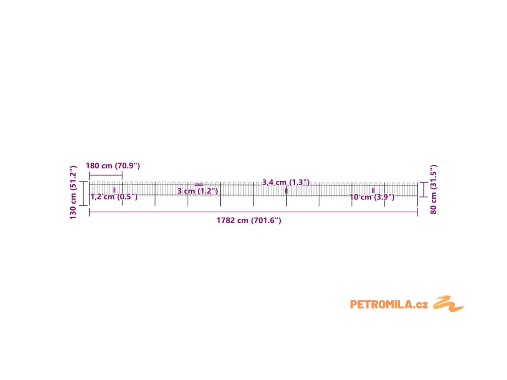 Zahradní plot s obloukem nahoře ocelový 1781,5 x 80 cm černý