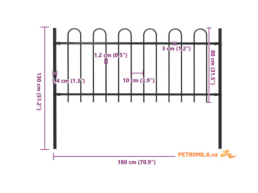 Zahradní plot s obloukem nahoře ocelový 181 x 80 cm černý