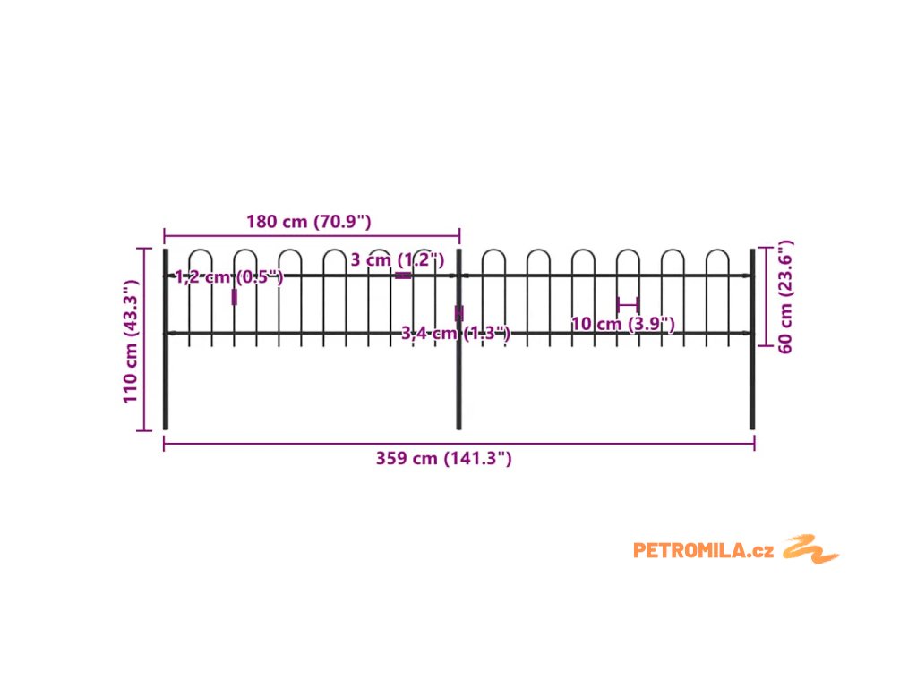 Zahradní plot s obloukem nahoře ocelový 359 x 60 cm černý