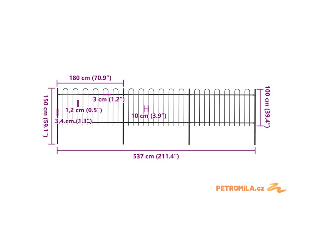 Zahradní plot s obloukem nahoře ocelový 537 x 100 cm černý