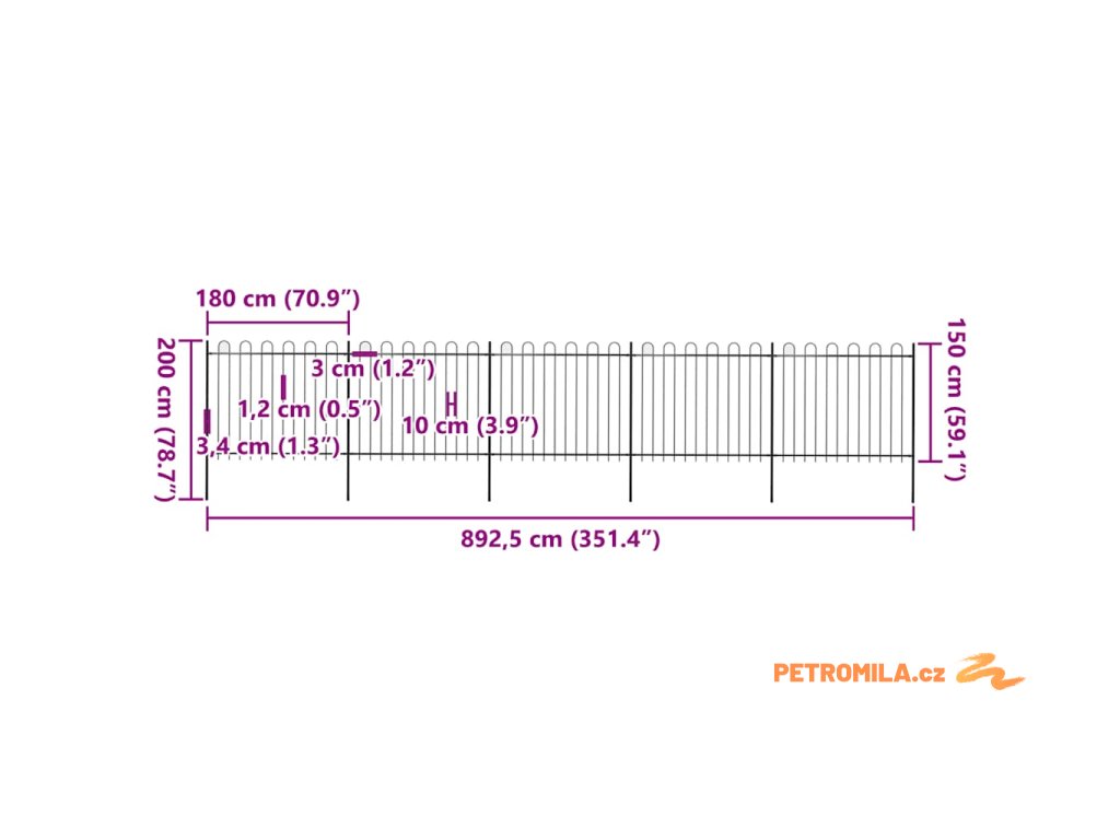 Zahradní plot s obloukem nahoře ocelový 892,5 x 150 cm černý