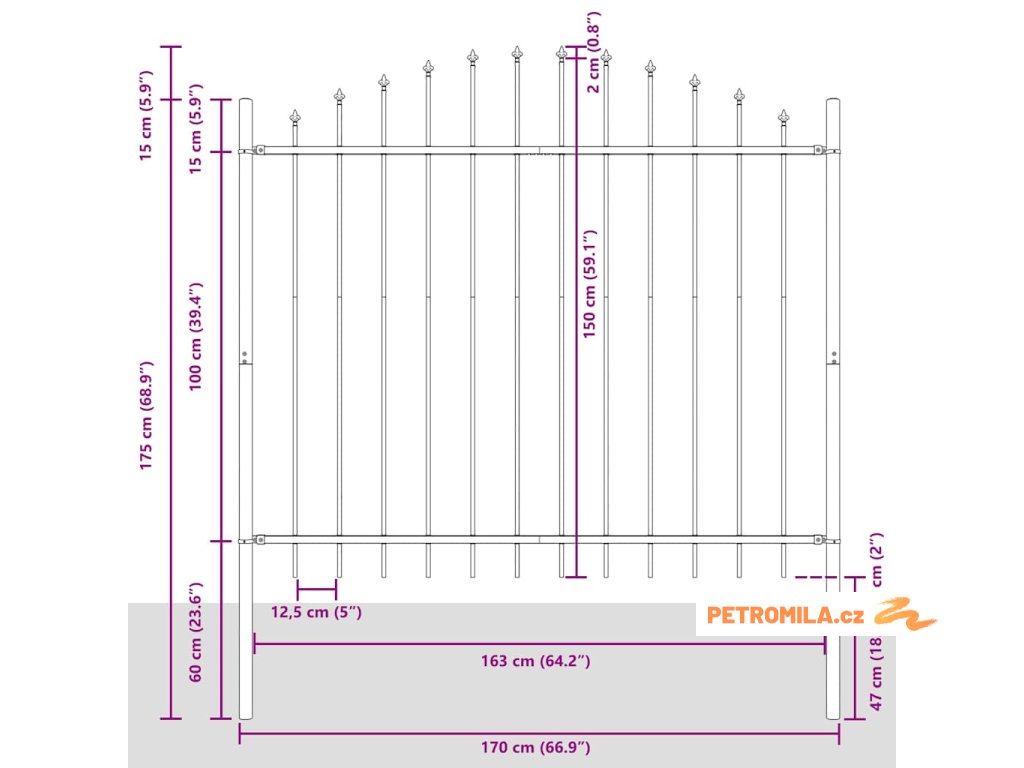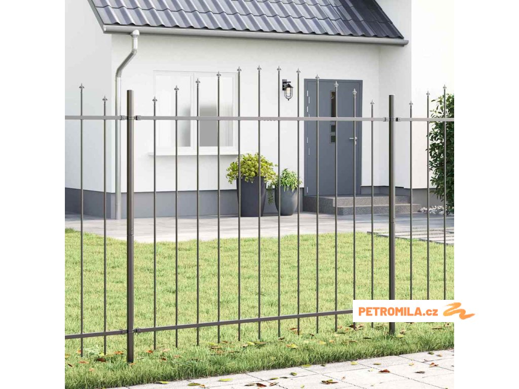 Zahradní plot s kopím nahoře černý 240 x 125 cm, práškově lakovaná ocel