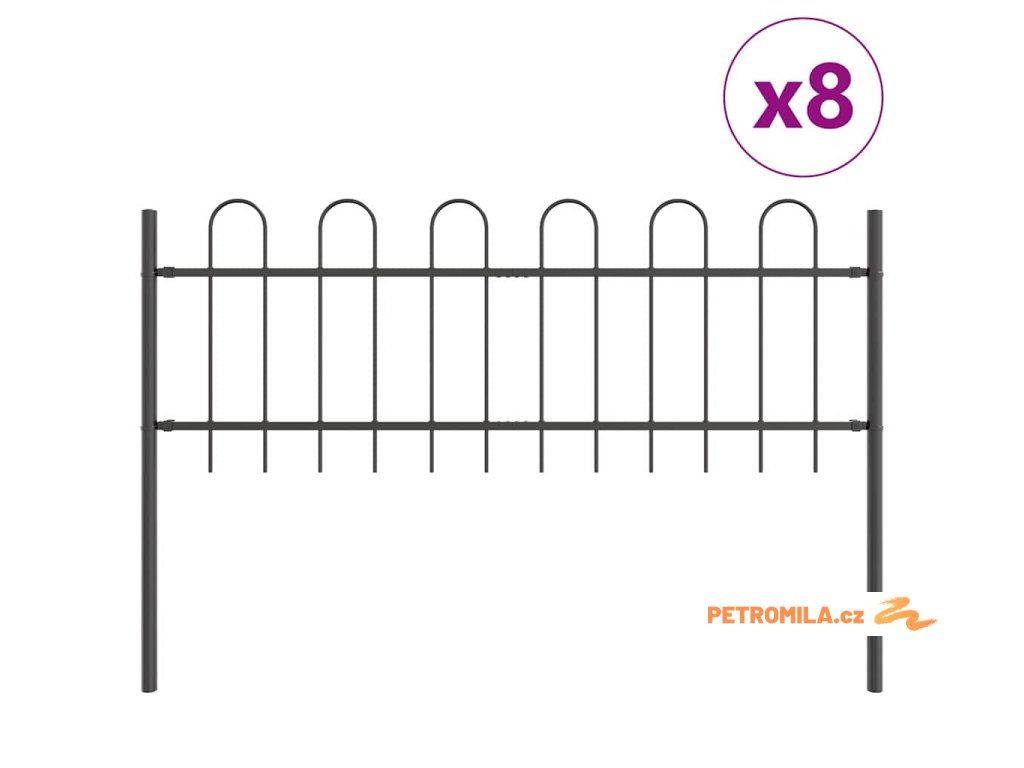 Zahradní plot 8 pcs Šedá 13,6 x 0,6 m Práškově lakovaná ocel