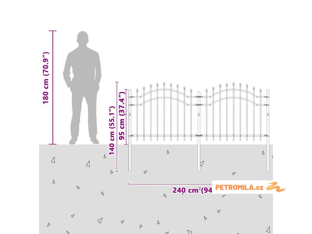 Zahradní plot Šedá 240 x 140 cm Práškově lakovaná ocel