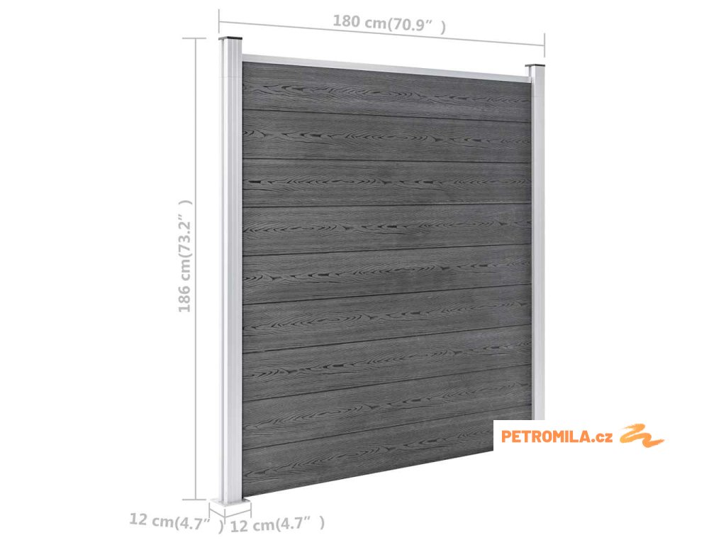 Zahradní plot WPC 1218 x 186 cm šedý