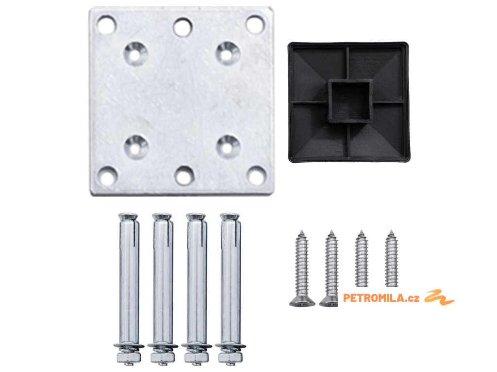 Balení obsahuje 9 dřevoplastových desek, 1 sloupek, 1 ocelovou základnu a 1 hliníkovou spojnici.