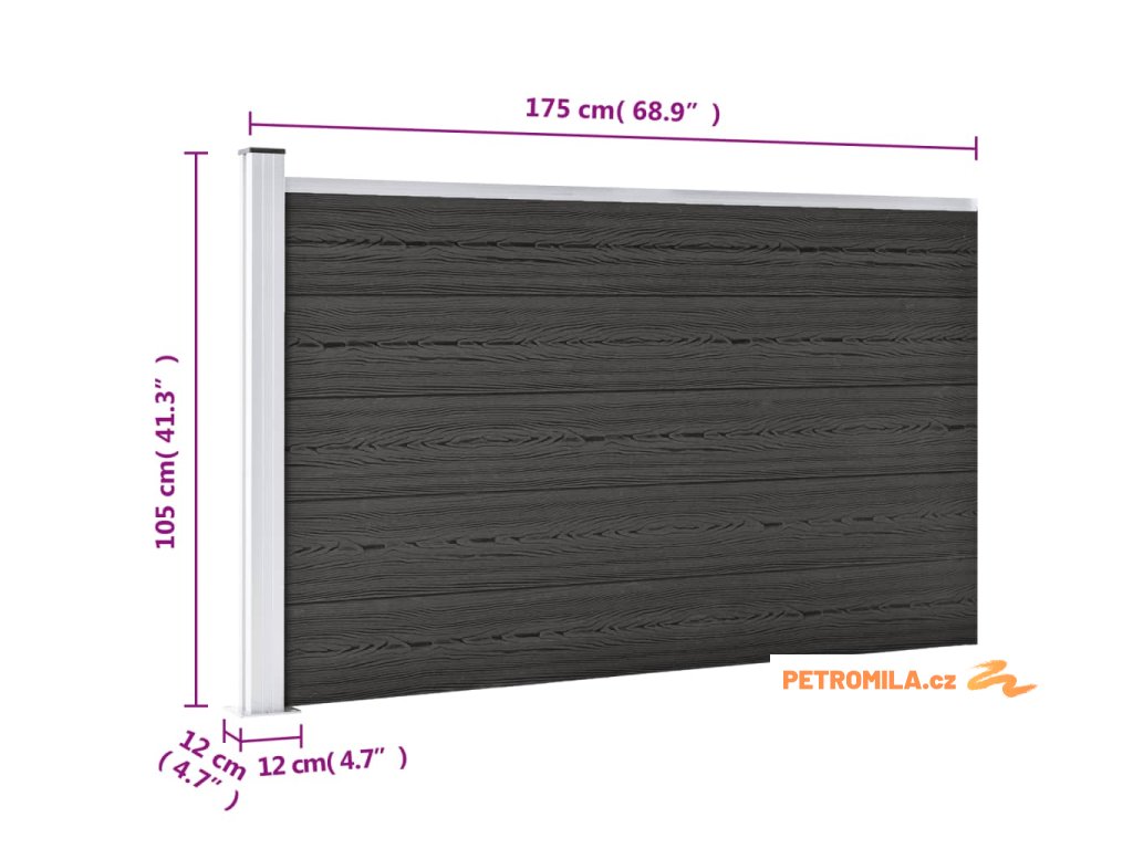 - Materiál: dřevoplast + hliníková lišta a sloupky