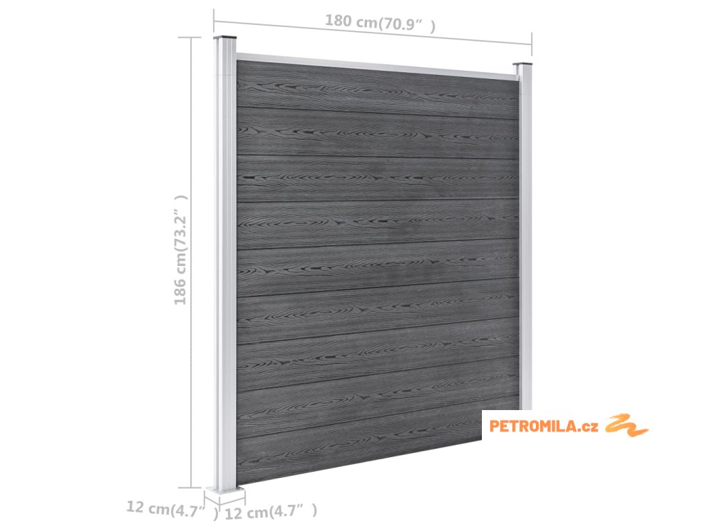 Zahradní plot WPC 353 x 186 cm šedý