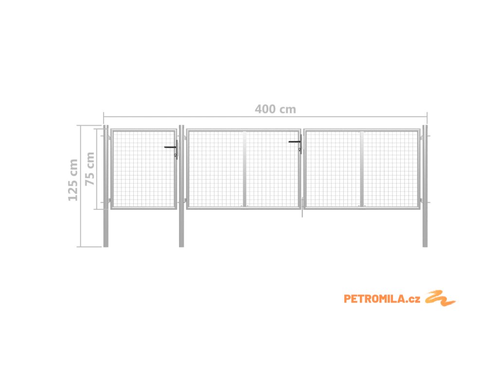 Zahradní plotová brána ocel 400 x 75 cm stříbrná