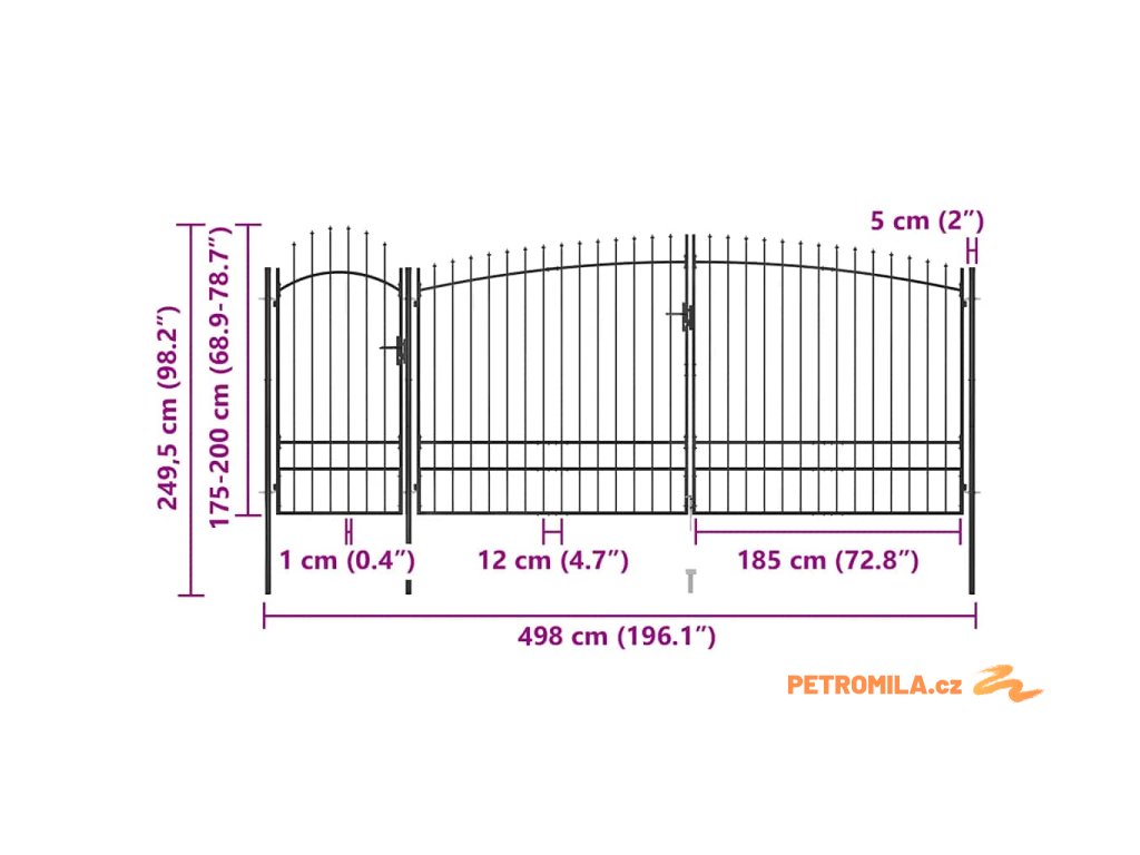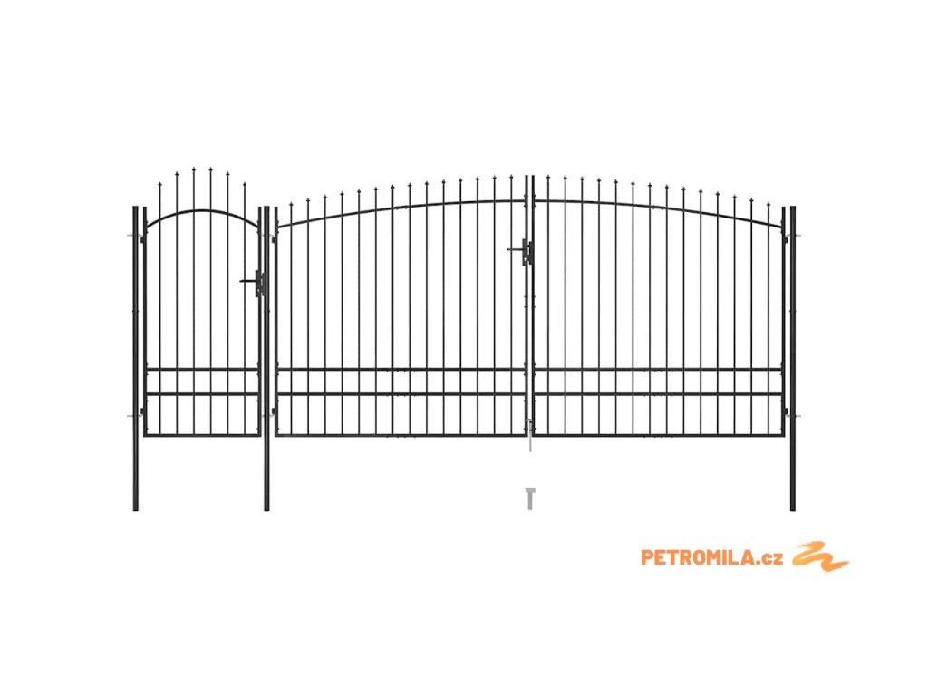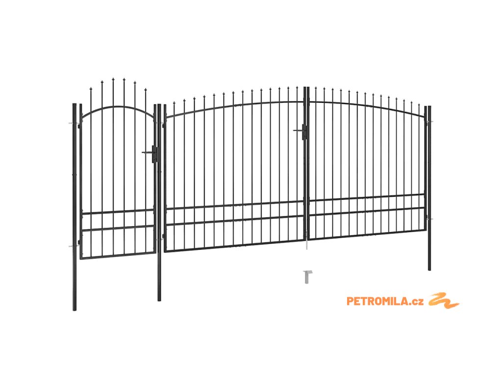 Zahradní plotová brána s hroty 5 x 2,45 m černá