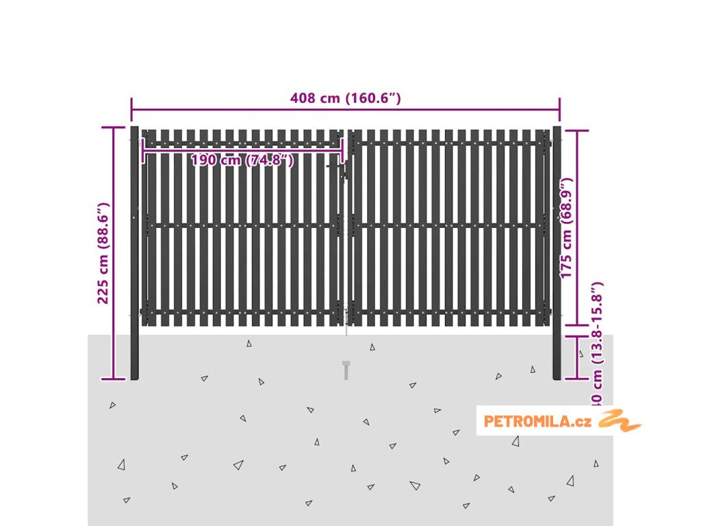 Zahradní plotová branka ocelová 400 x 175 cm antracitová