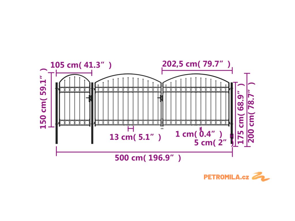 Zahradní plotová branka s obloukem ocelová 2 x 5 m černá