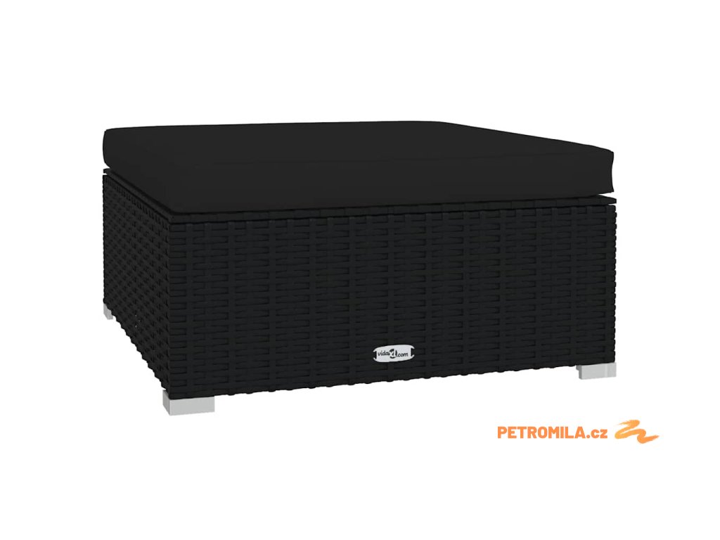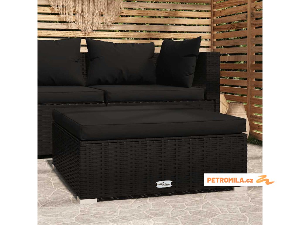 Zahradní podnožka s poduškou černá 70 x 70 x 30 cm polyratan