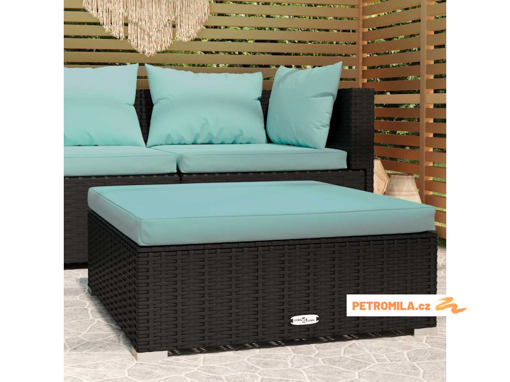 Zahradní podnožka s poduškou černá 70 x 70 x 30 cm polyratan