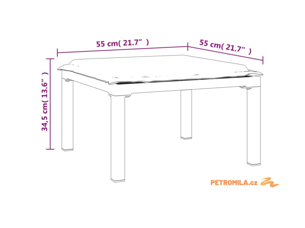 - Rozměry podušky na sedák: 55 x 55 x 3,5 cm (D x Š x T)